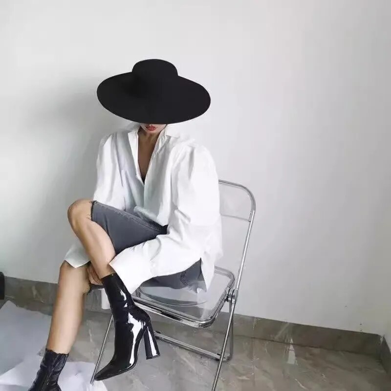 New Fashion French Women’s Hat Big Wide Brim 10CM Fedora Hat Derby Wedding Jazz Hats Flat Top Felt Hat